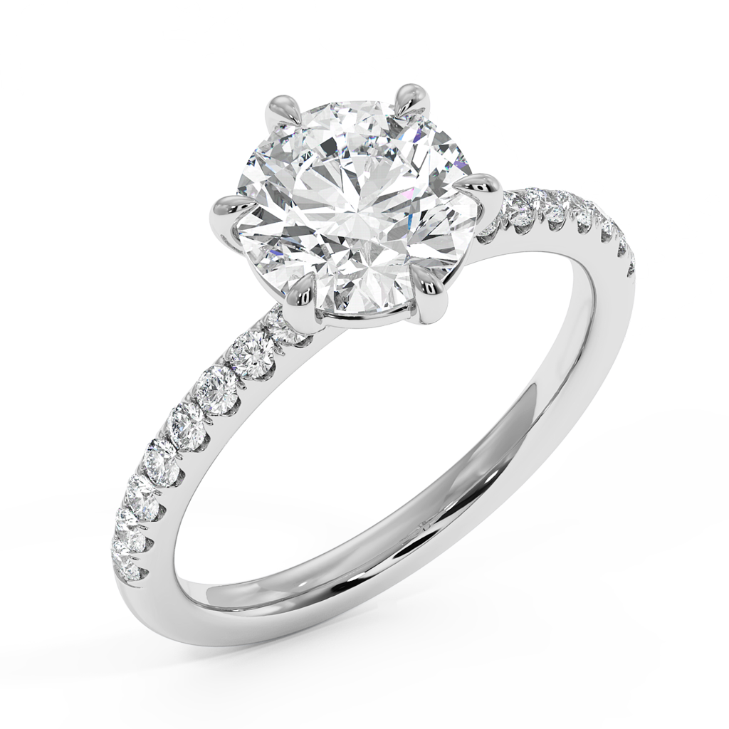Round cut diamonds the most popular diamond shape for rings. They are cut to optimise brillance, with a high number of facets that each reflect light to maximise the sparkle and flashing effect of the diamond.