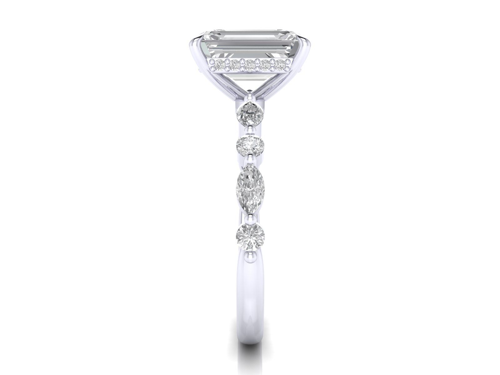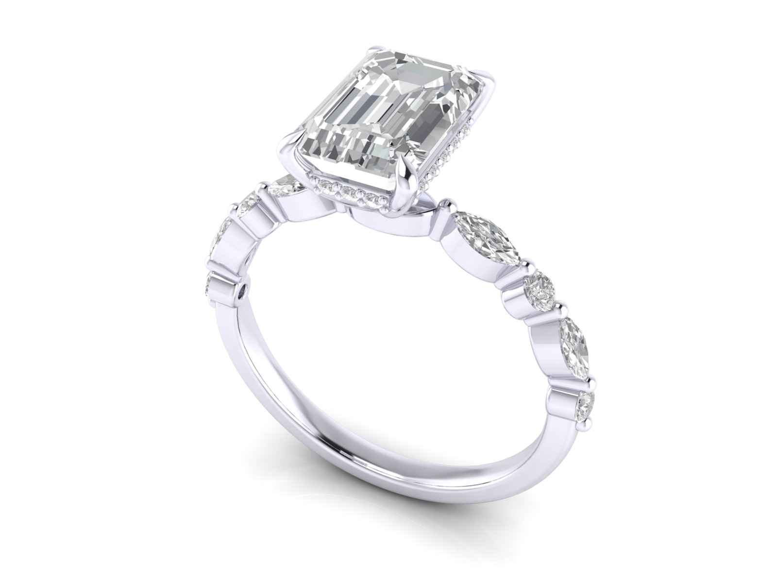 Emerald with Marquise Band and Hidden Halo