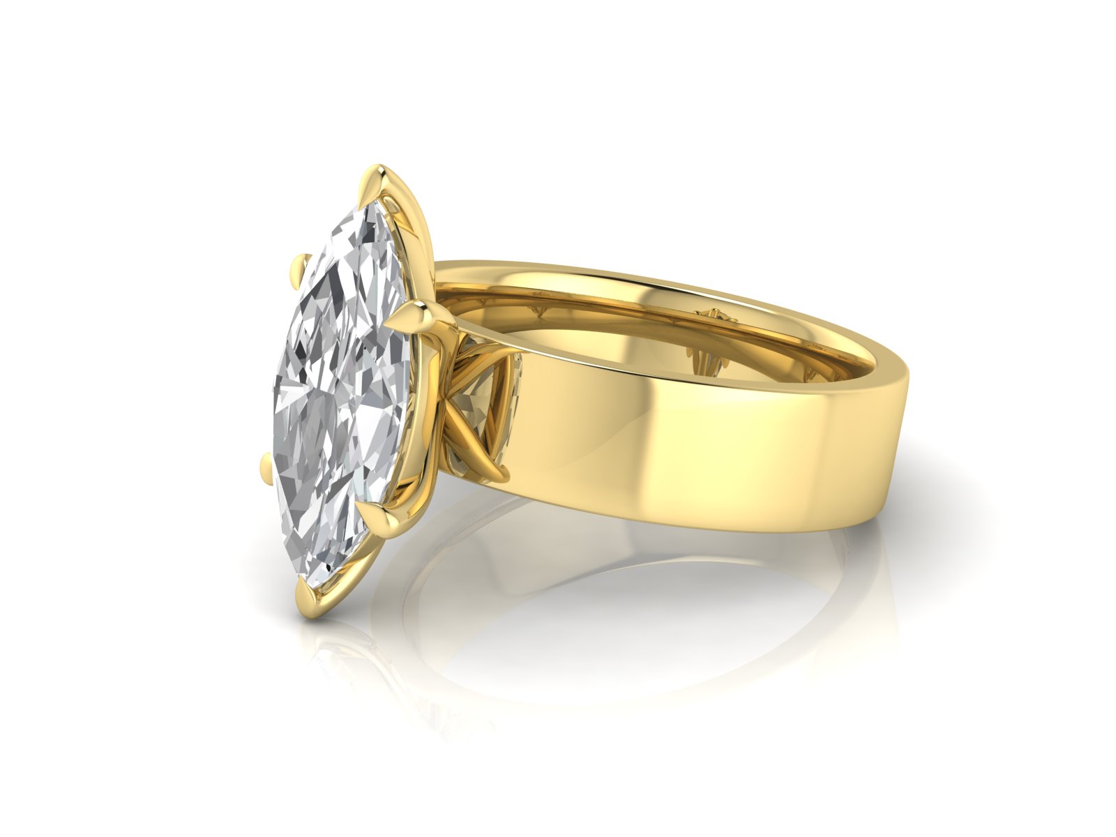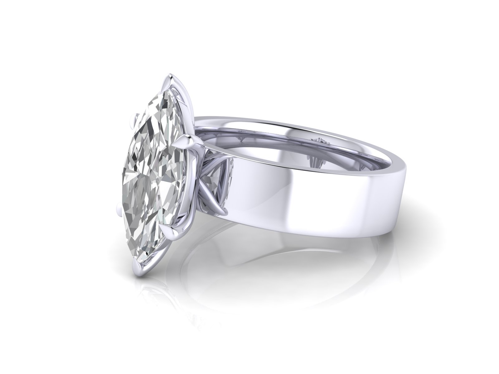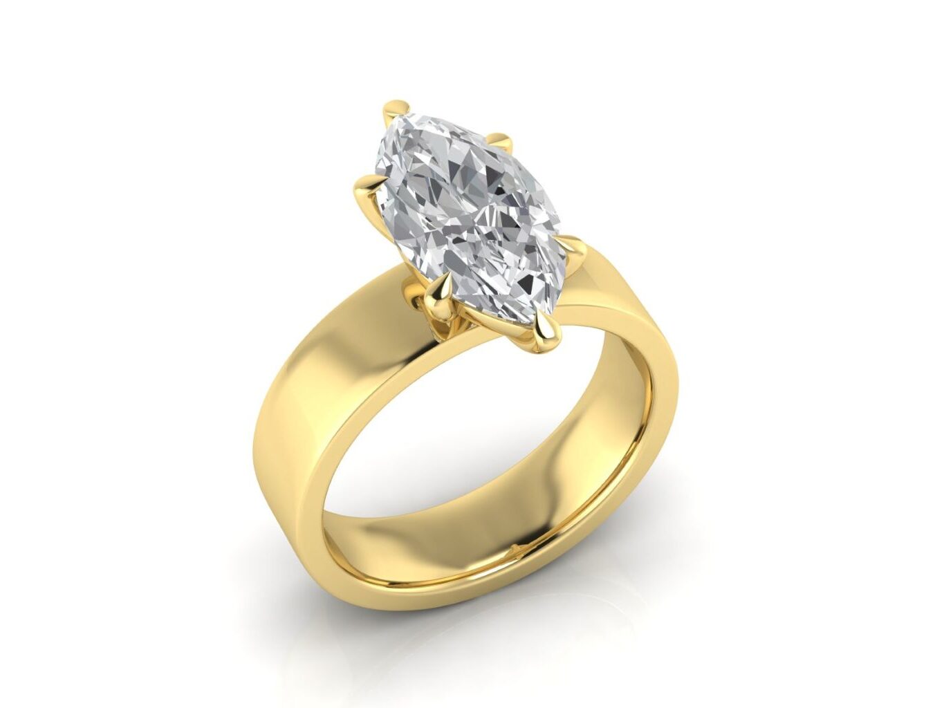 A marquise diamond set on a sleek, flat 5mm band for a minimal yet impactful aesthetic. This design blends bold simplicity with the elegance of the marquise shape.