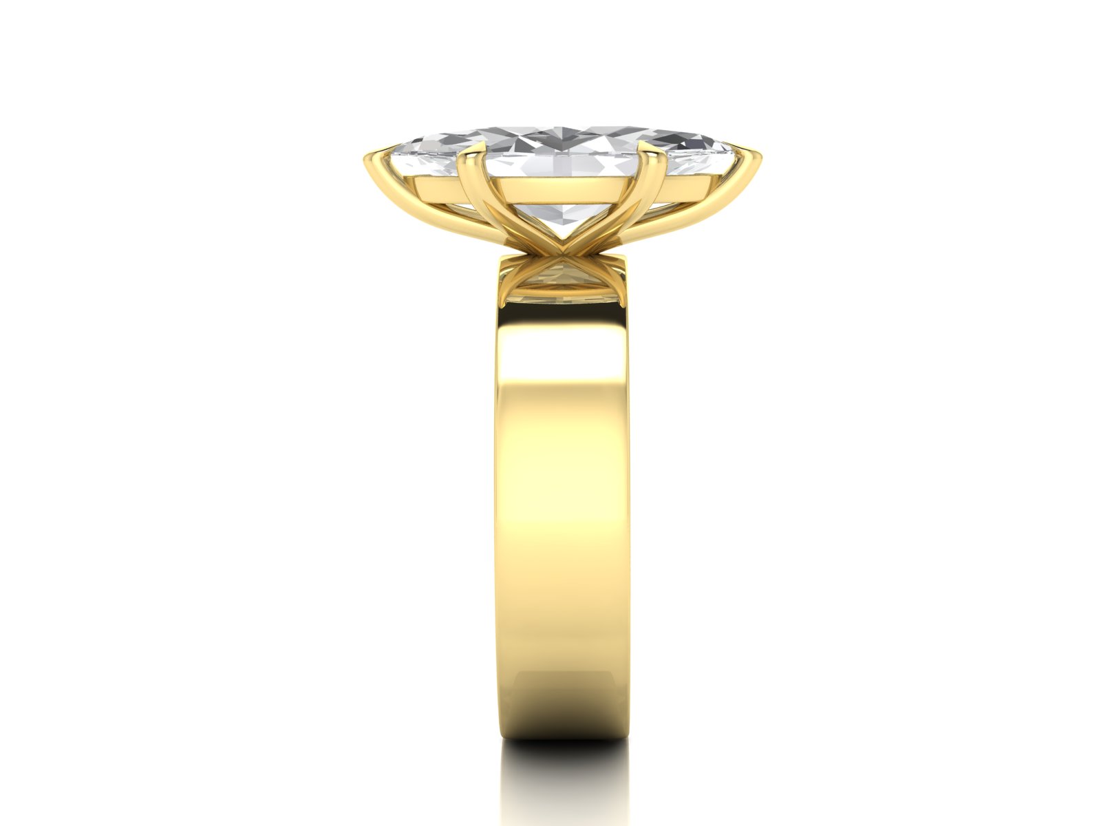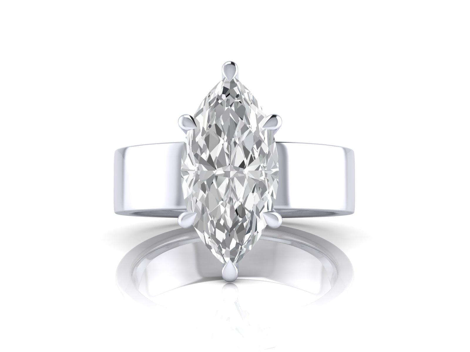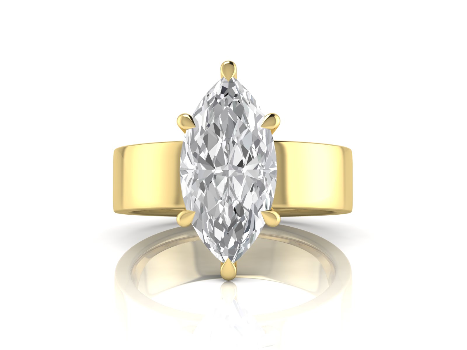A marquise diamond set on a sleek, flat 5mm band for a minimal yet impactful aesthetic. This design blends bold simplicity with the elegance of the marquise shape.