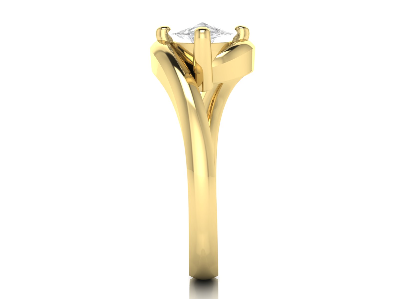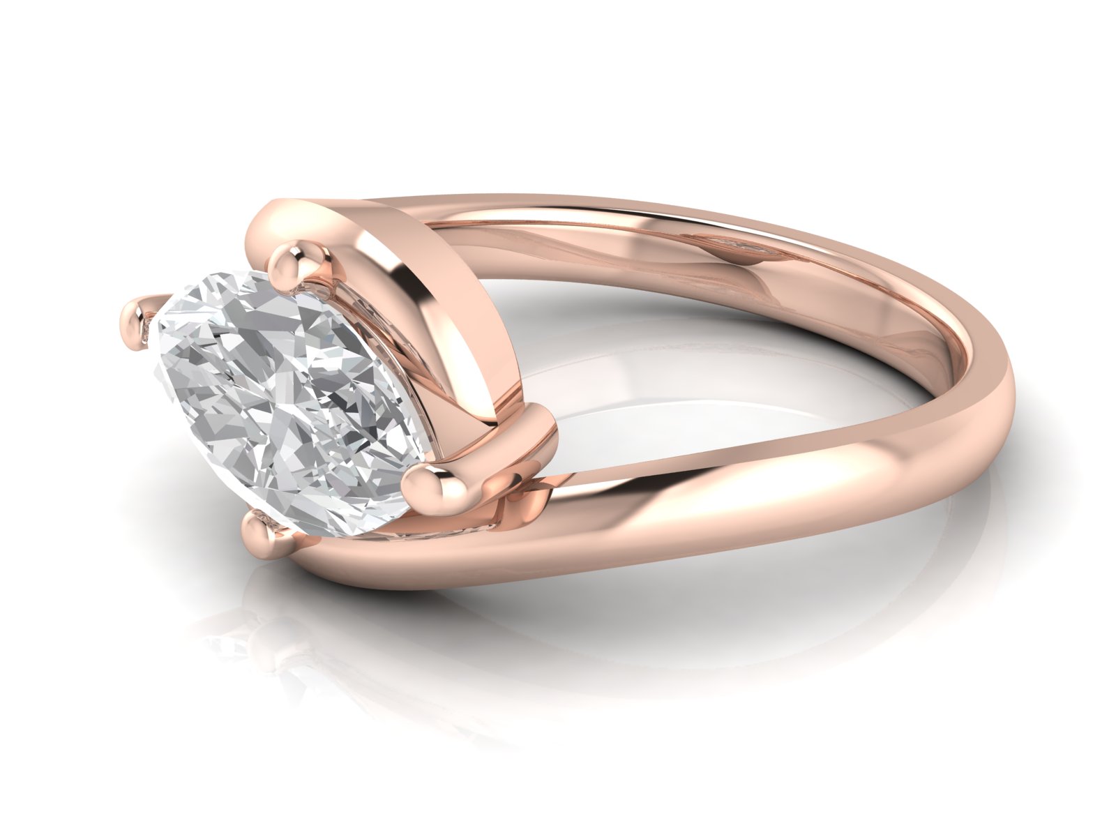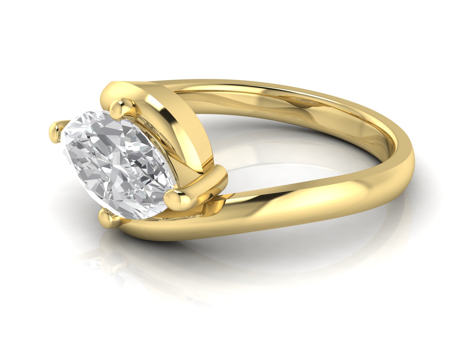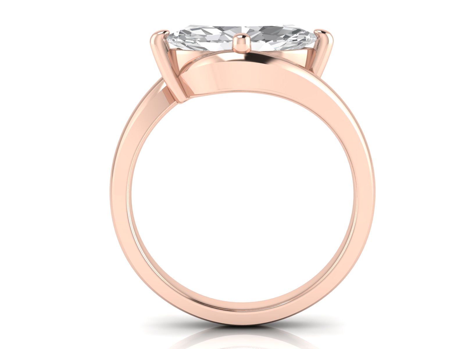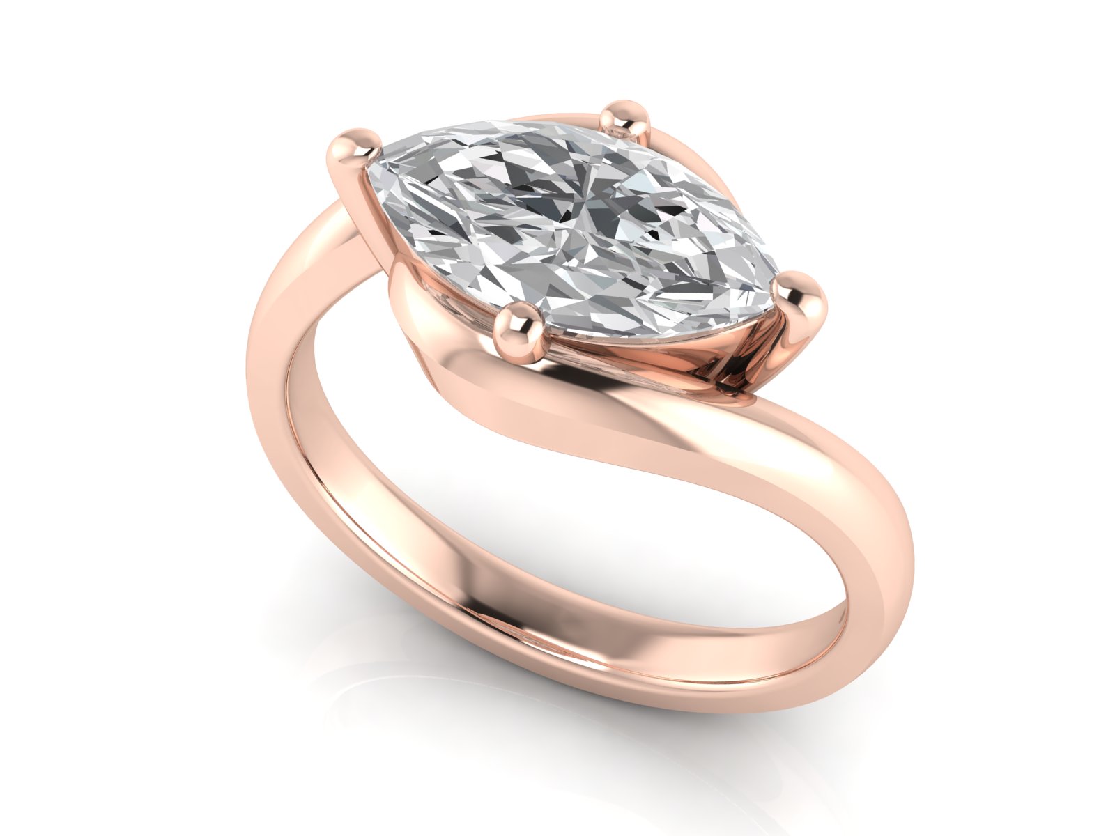 A marquise centre stone showcased in a sleek solitaire setting, paired with a graceful bypass band that curves gently around the finger for a fluid, contemporary look. The flowing design highlights the elongated shape of the stone, creating a sense of movement and refined elegance.