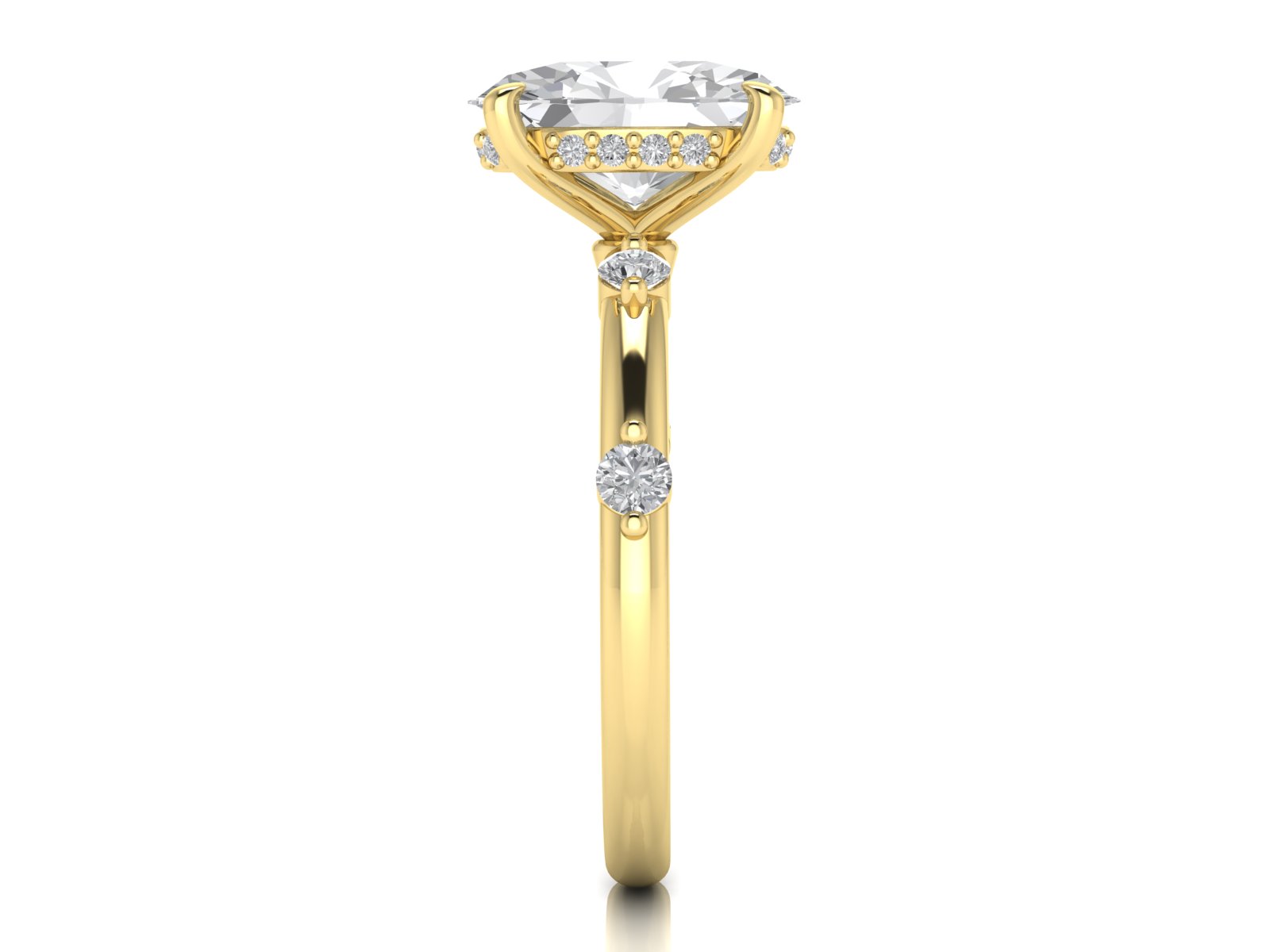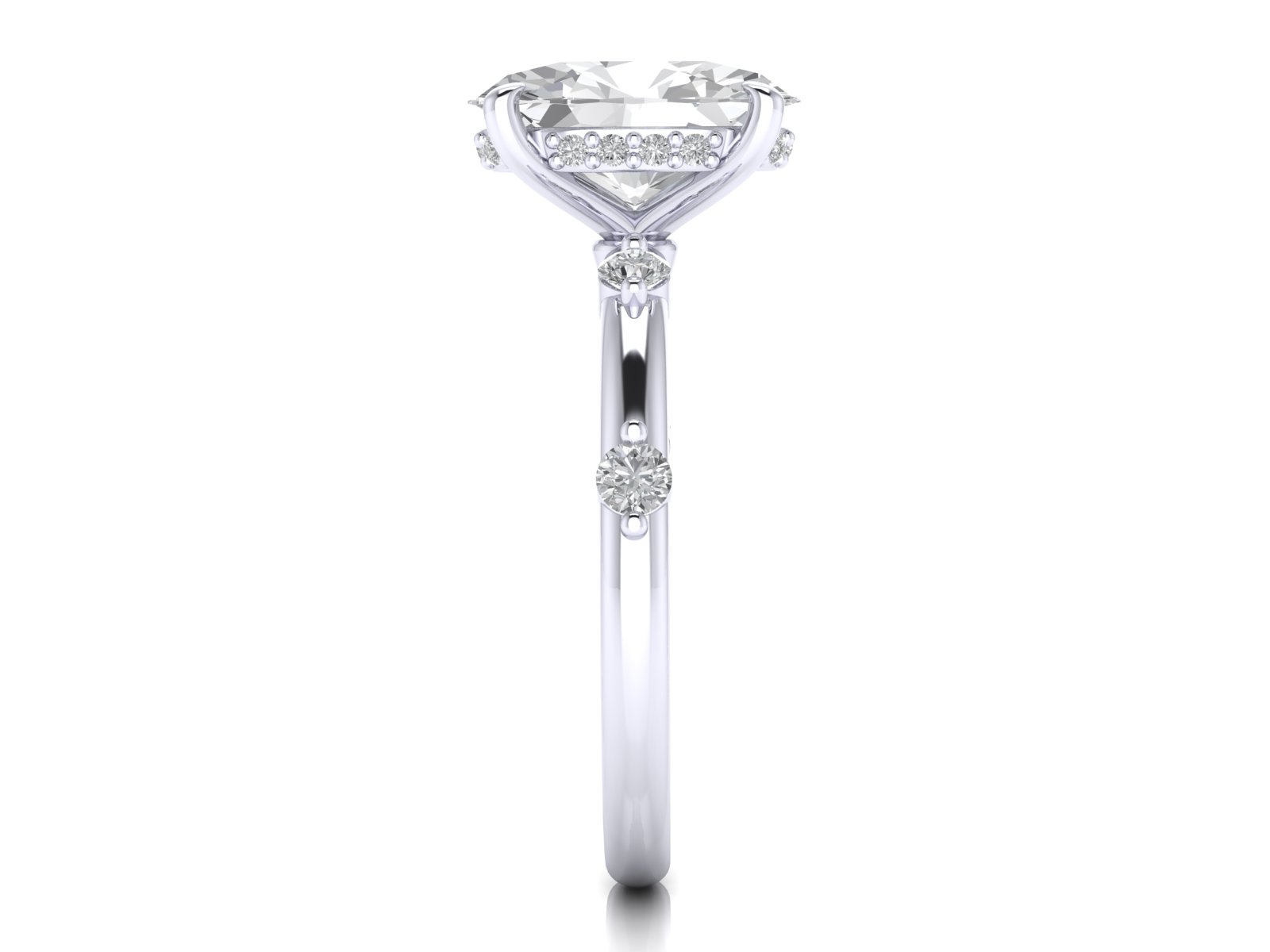 Oval Solitaire With Round Diamond Spaced Band