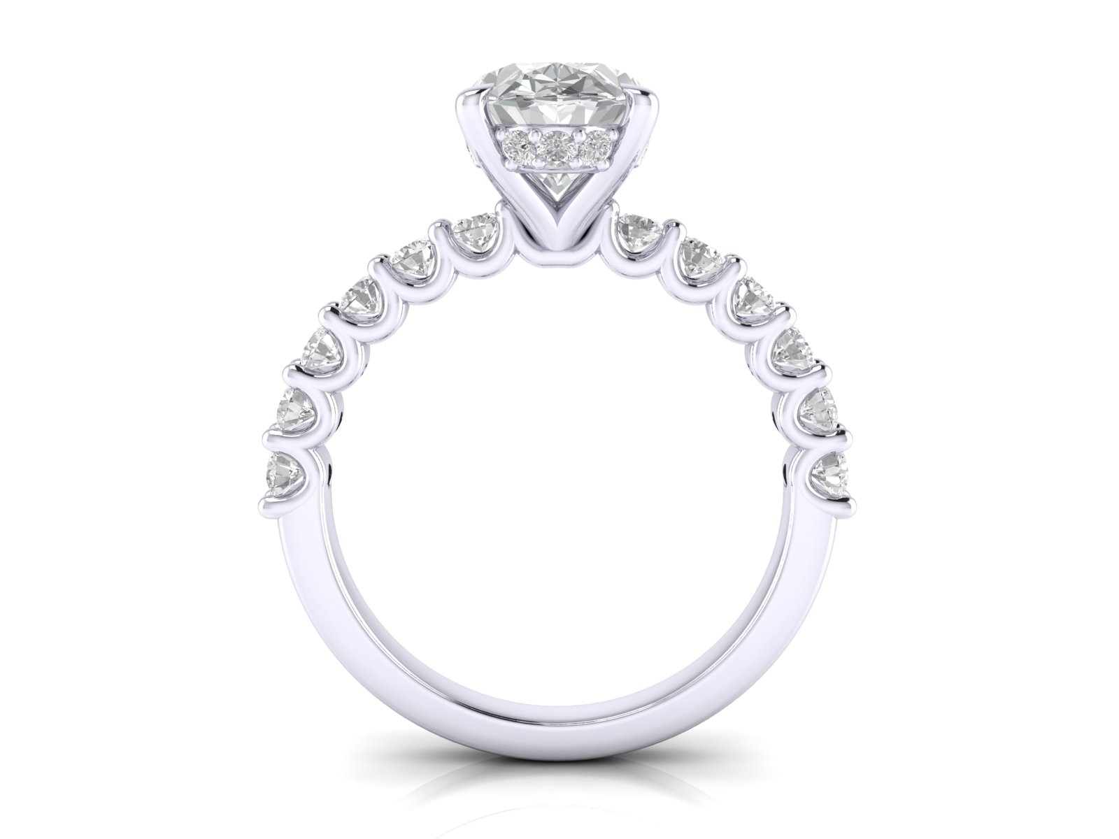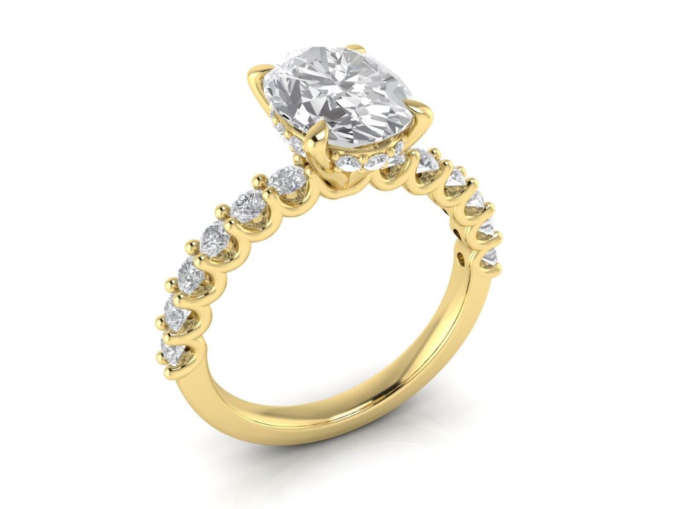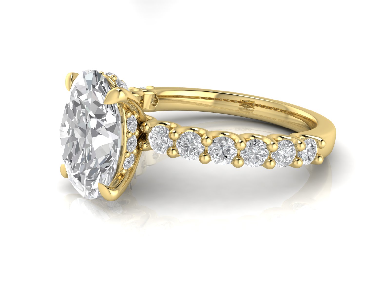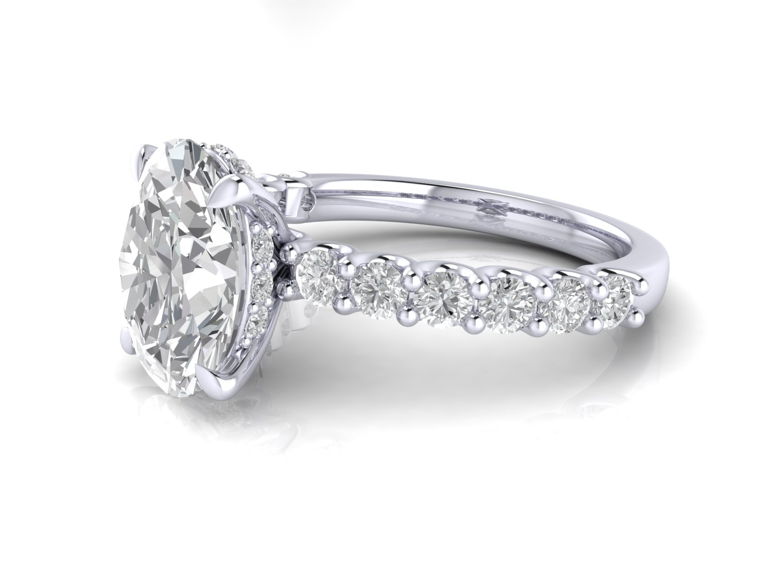 Oval Solitaire with Scallop set Diamond Band and Hidden Halo