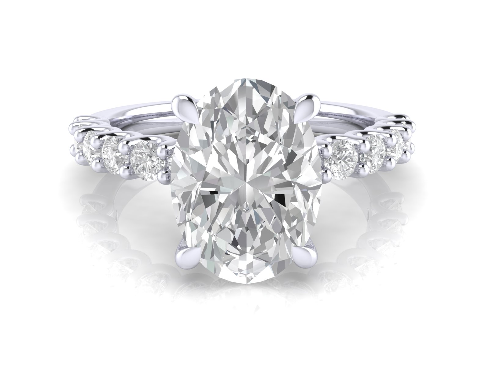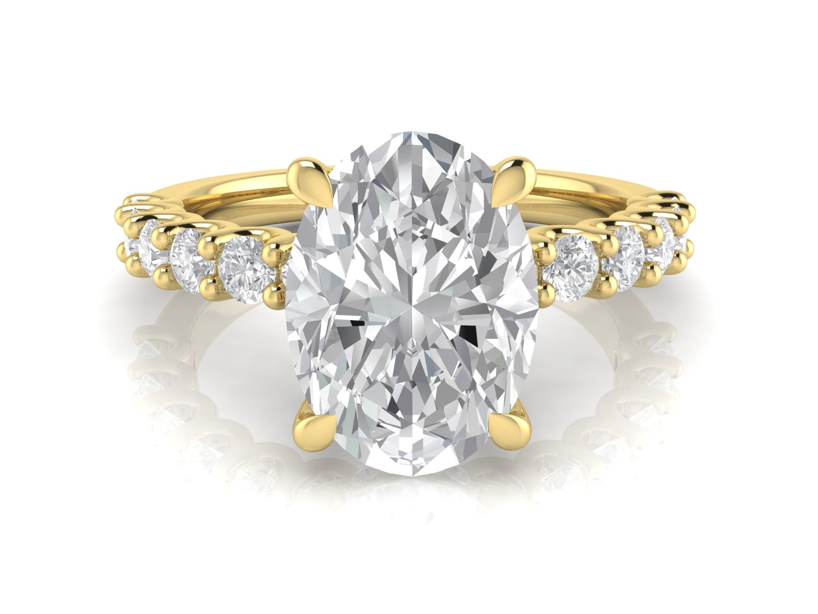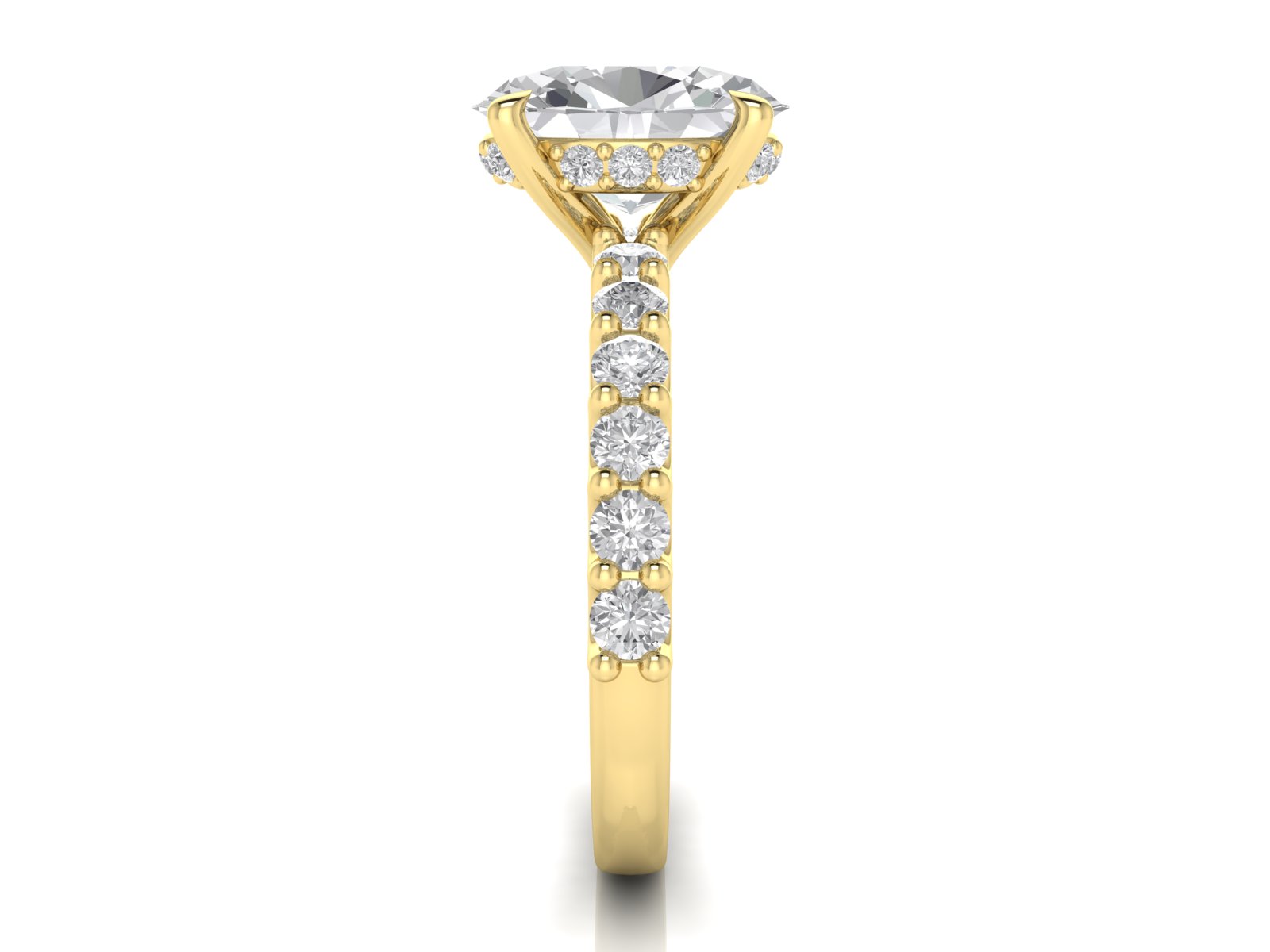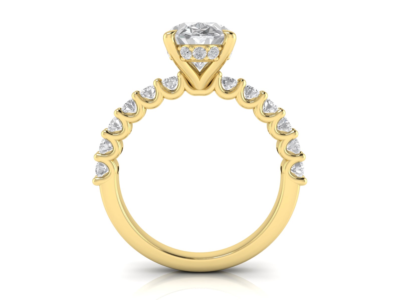 Oval Solitaire with Scallop set Diamond Band and Hidden Halo