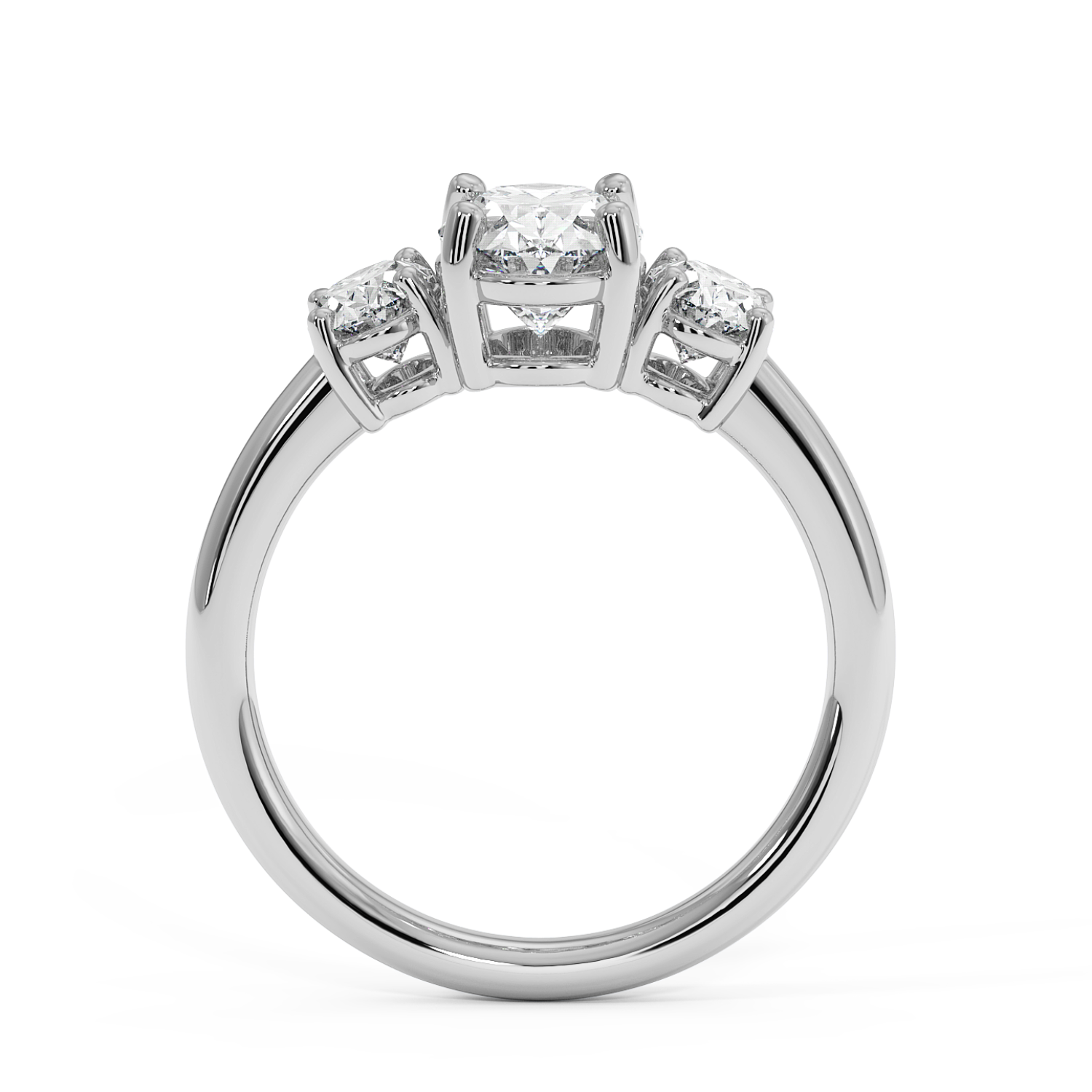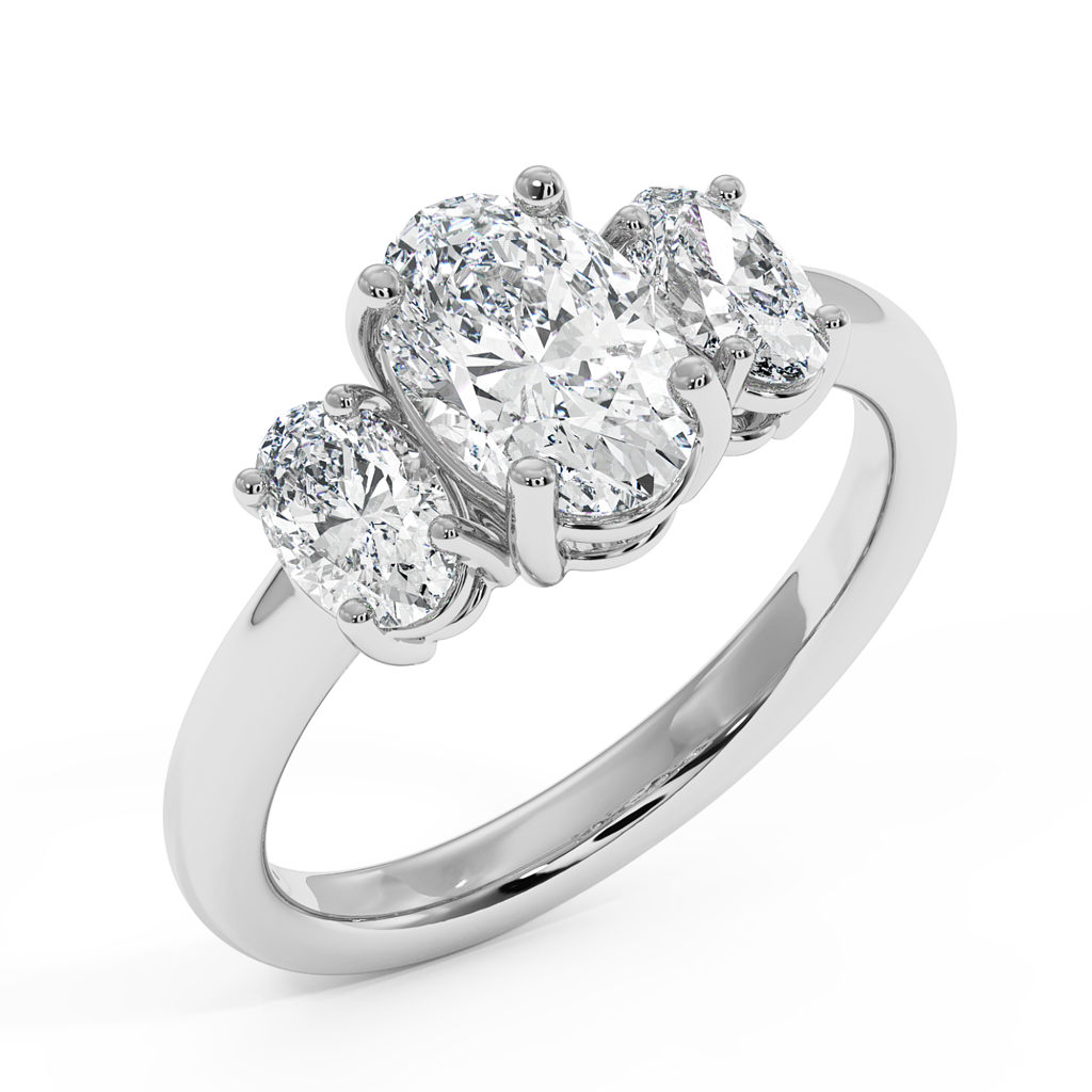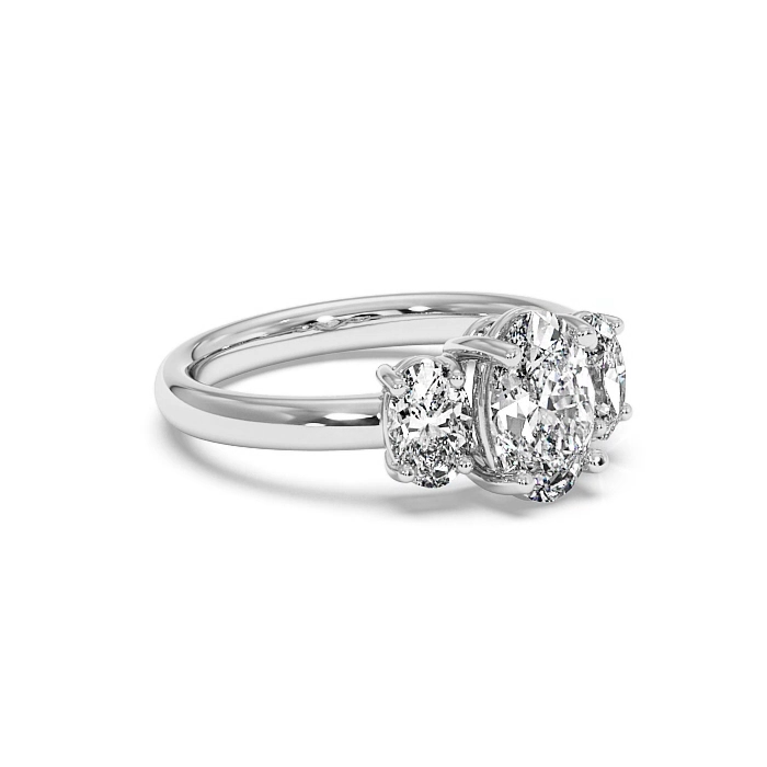 Featuring three stones closely set together, typically two smaller stones with a larger centre stone. The trilogy style ring offers a classic look and you can great creative by selecting different shaped diamonds to create something unique. This ring style is said to represent a couples past, present and future.