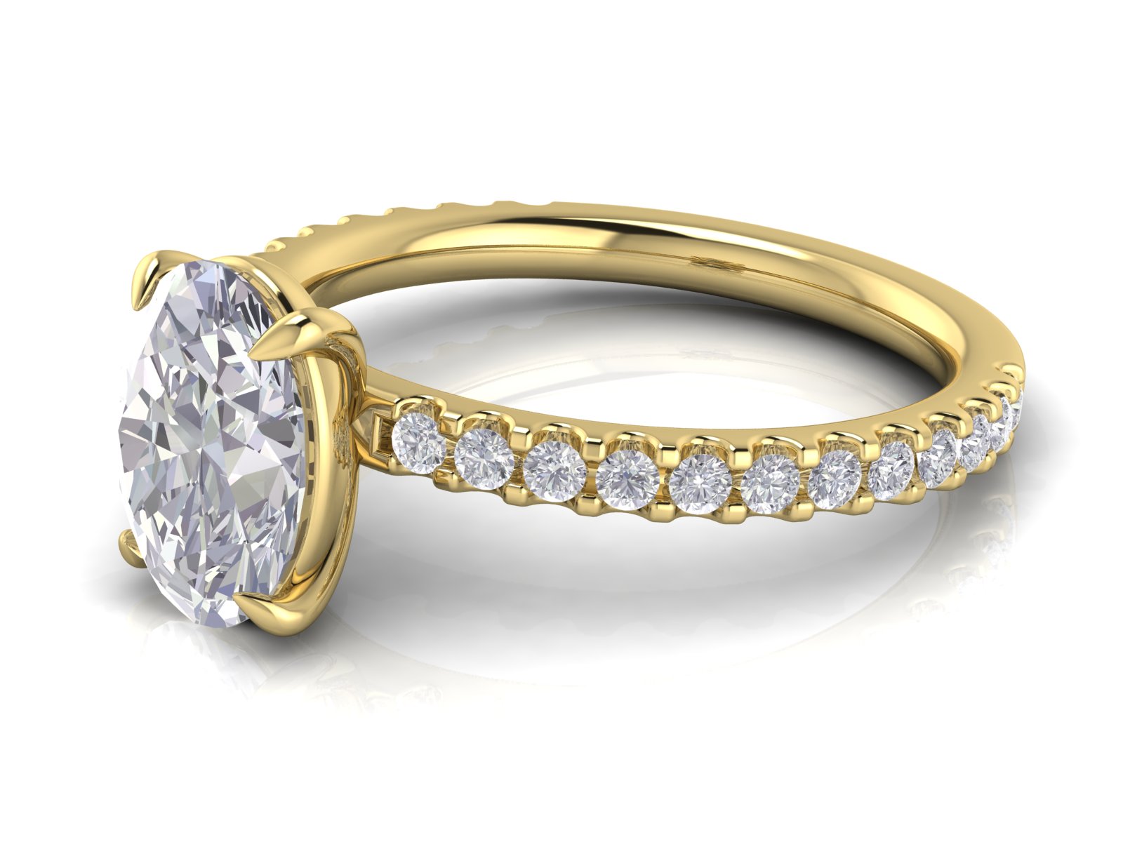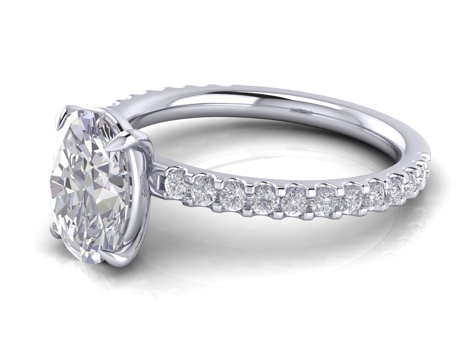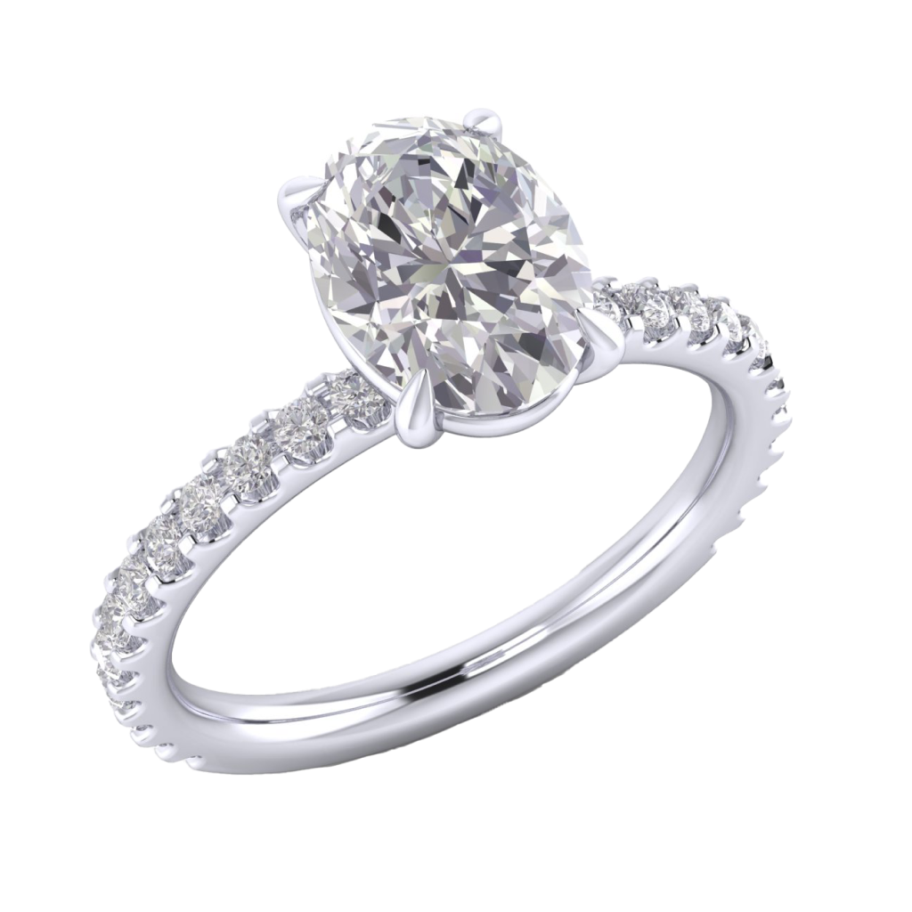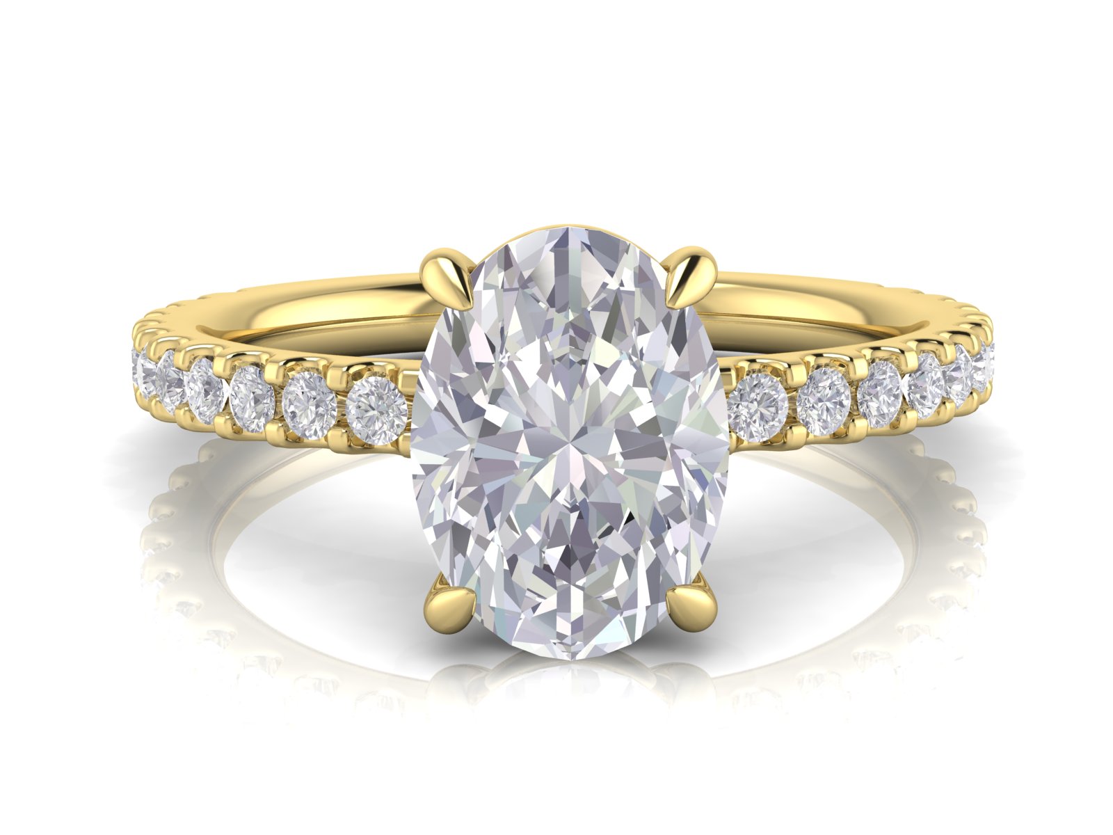 An elegant oval centre stone paired with a sparkling diamond band for added brilliance. This design enhances the elongated look of the oval while maintaining a timeless and refined profile