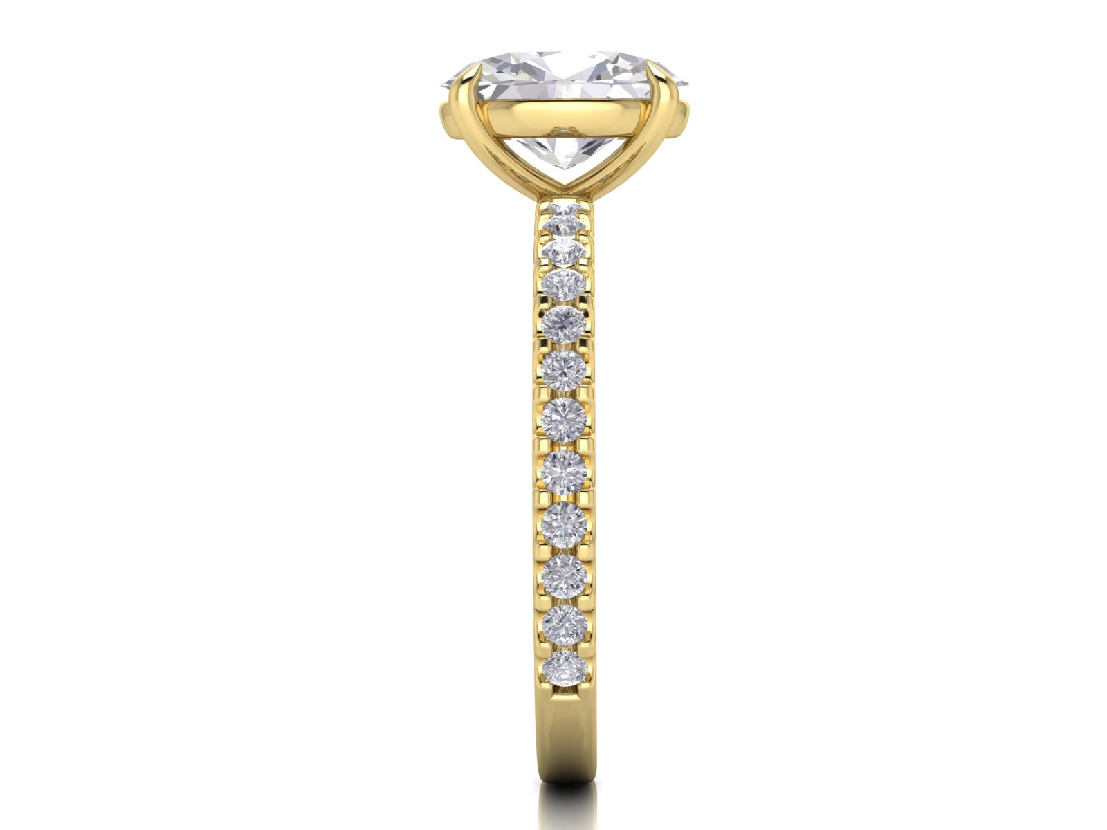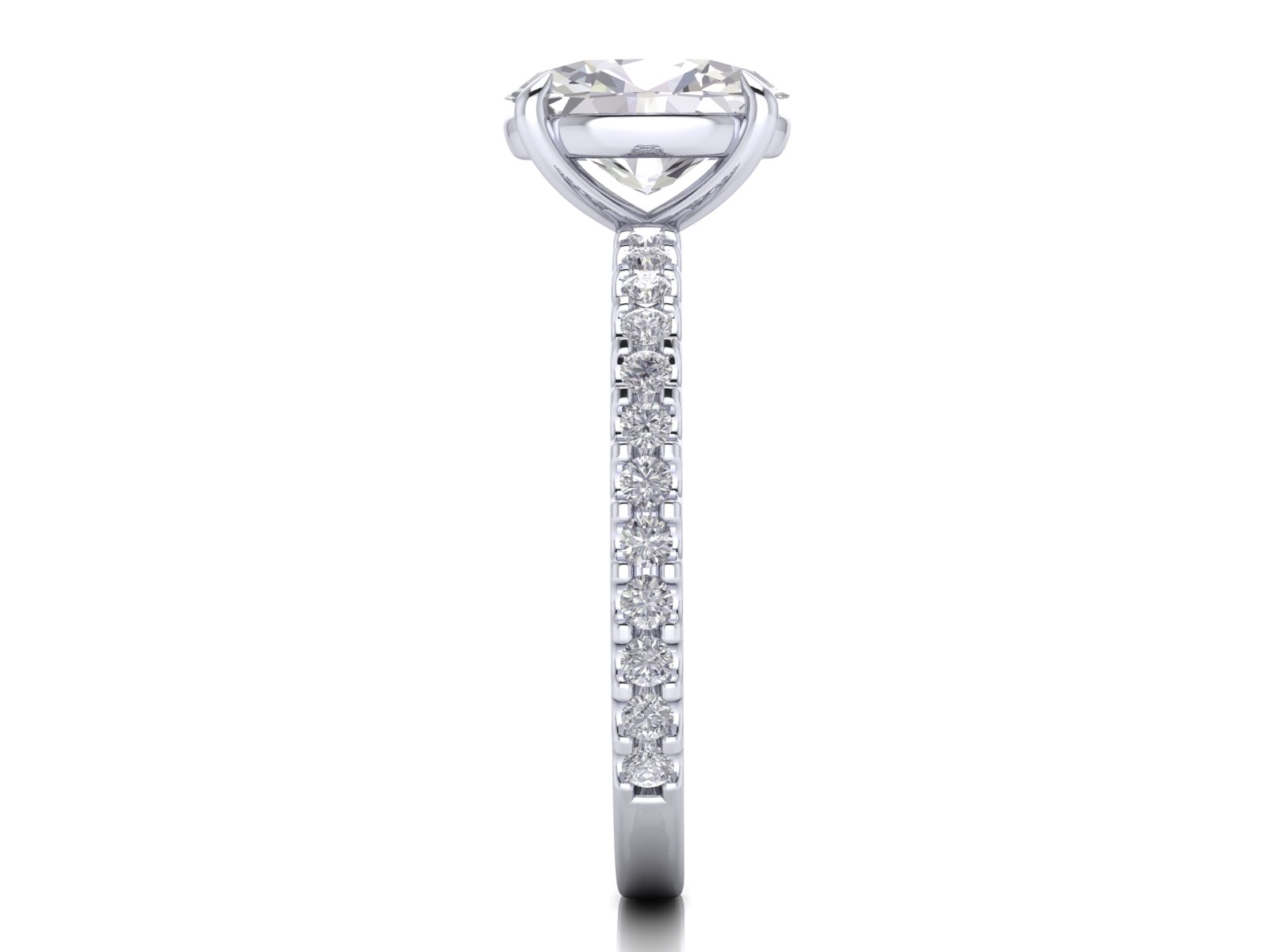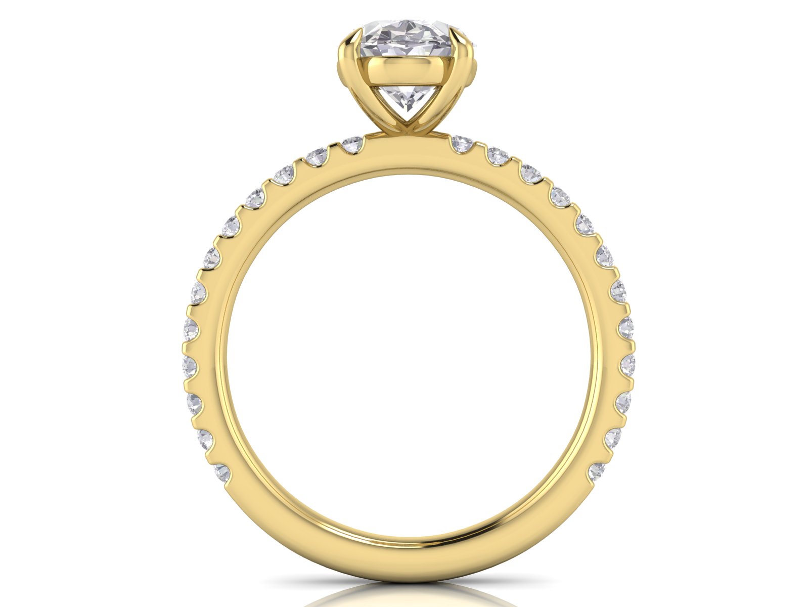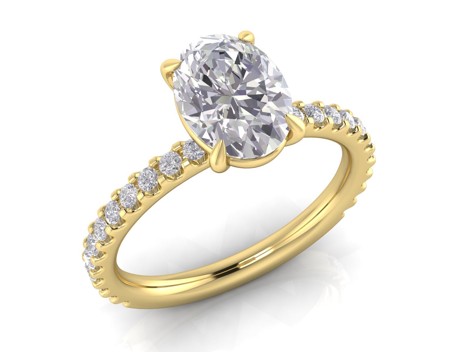 An elegant oval centre stone paired with a sparkling diamond band for added brilliance. This design enhances the elongated look of the oval while maintaining a timeless and refined profile