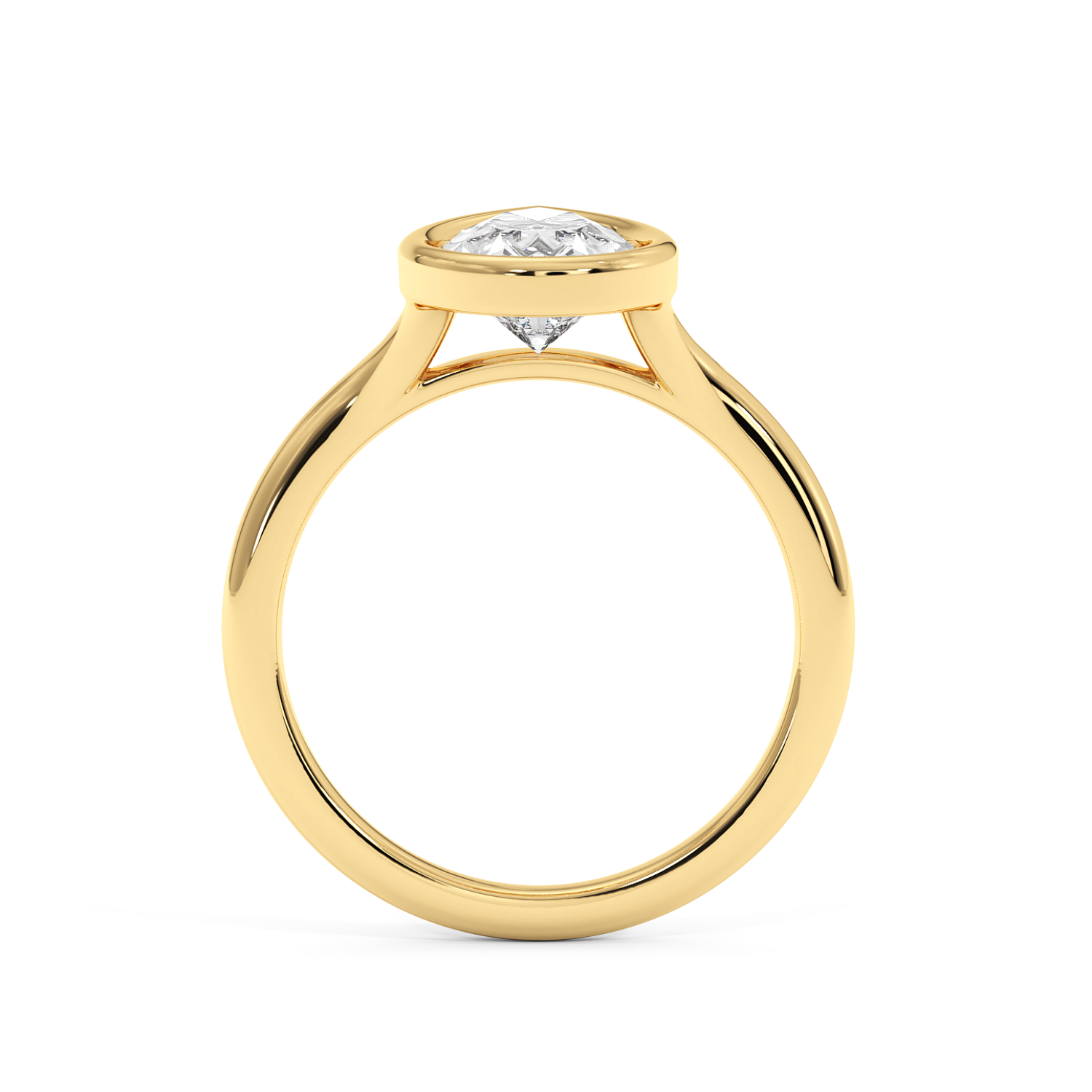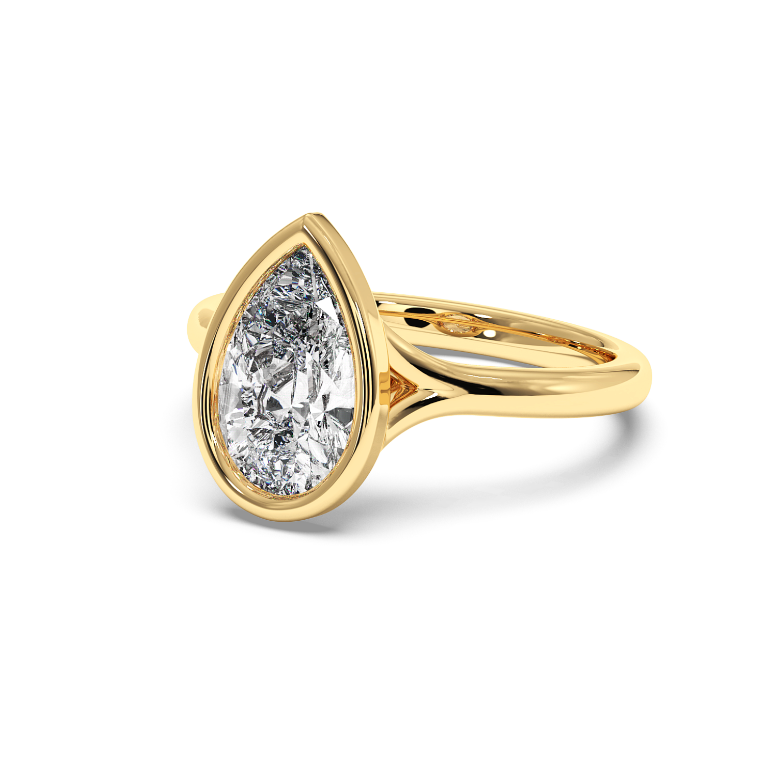 A pear-shaped diamond securely framed in a smooth bezel setting and paired with a split band for added visual interest. This design feels modern, minimal and striking.