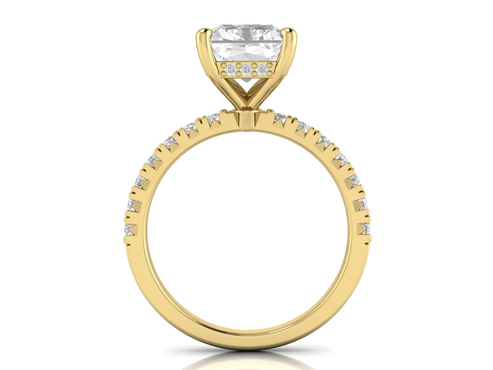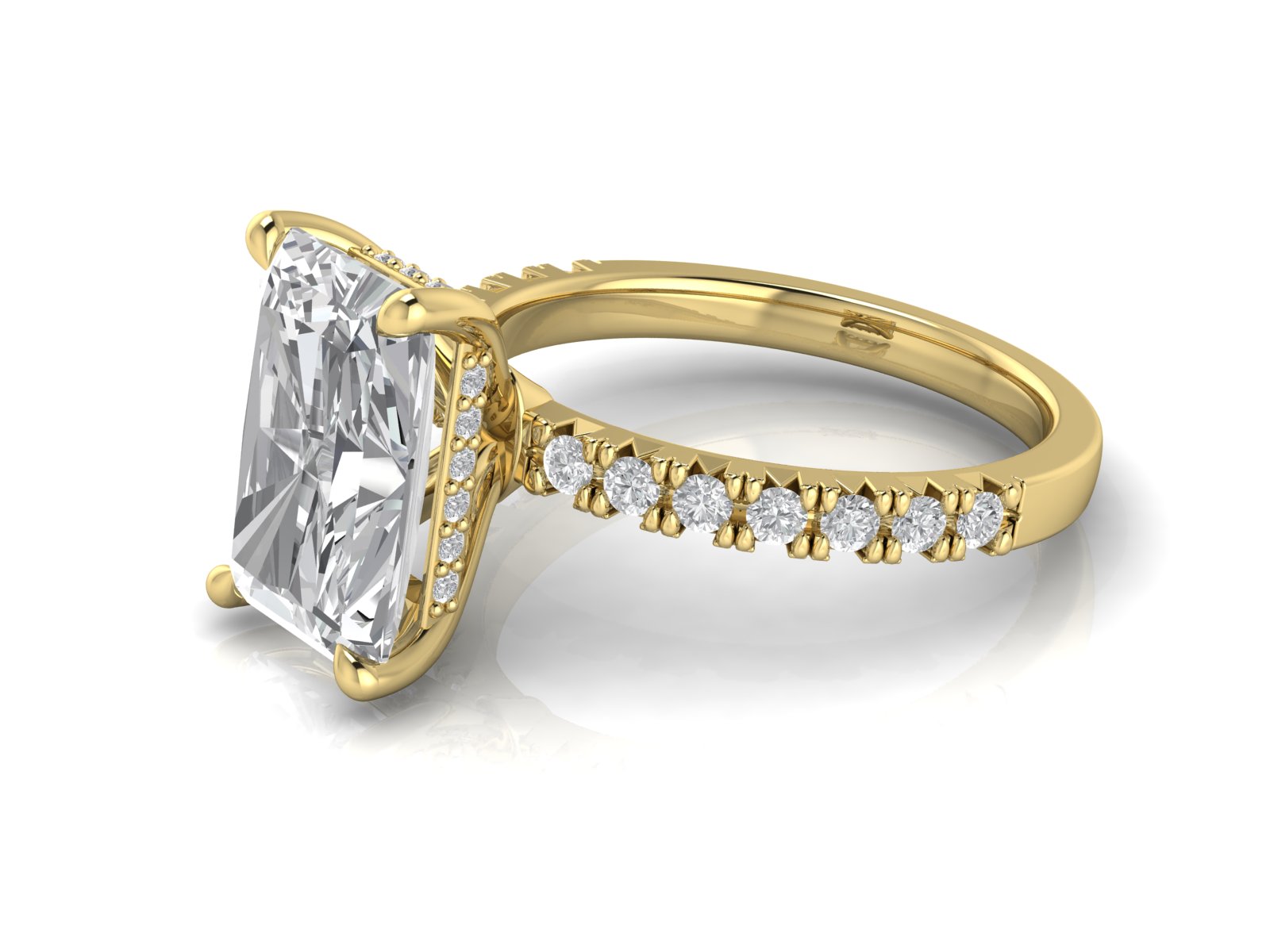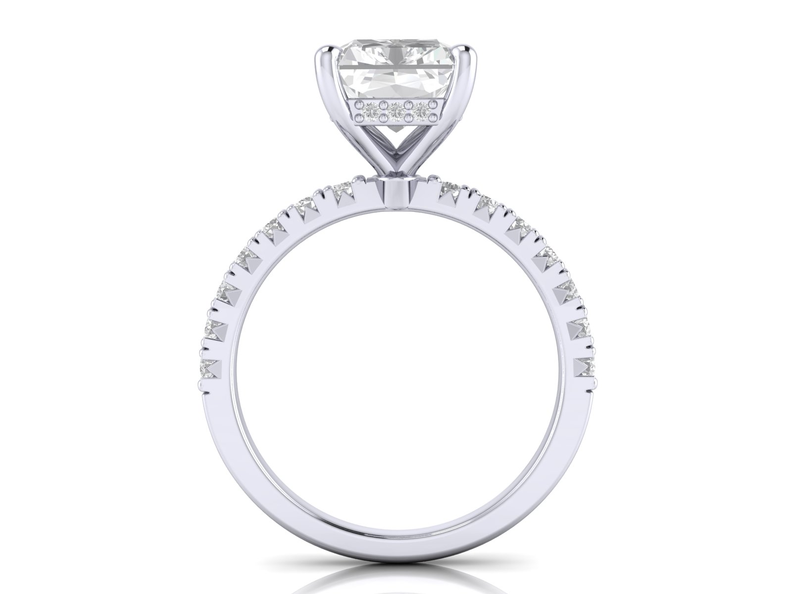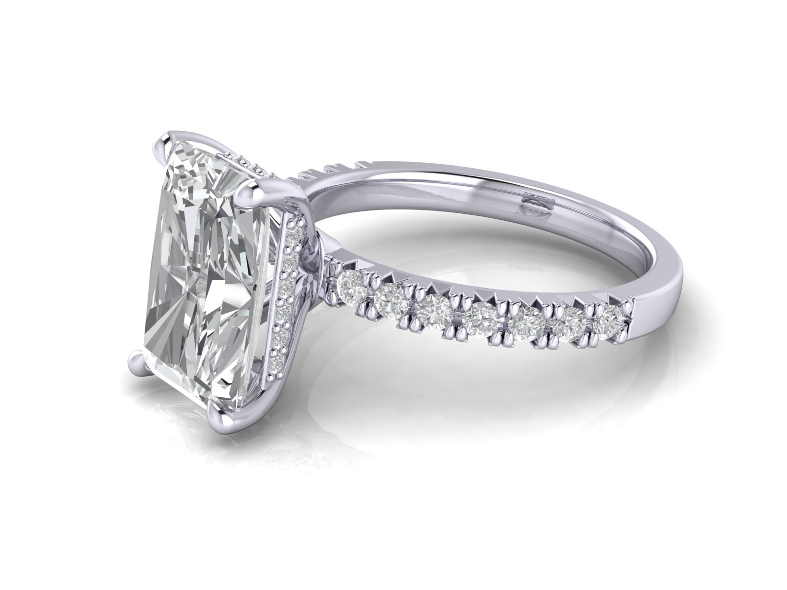 Radiant Solitaire With French Setting Diamond Band and Hidden Halo