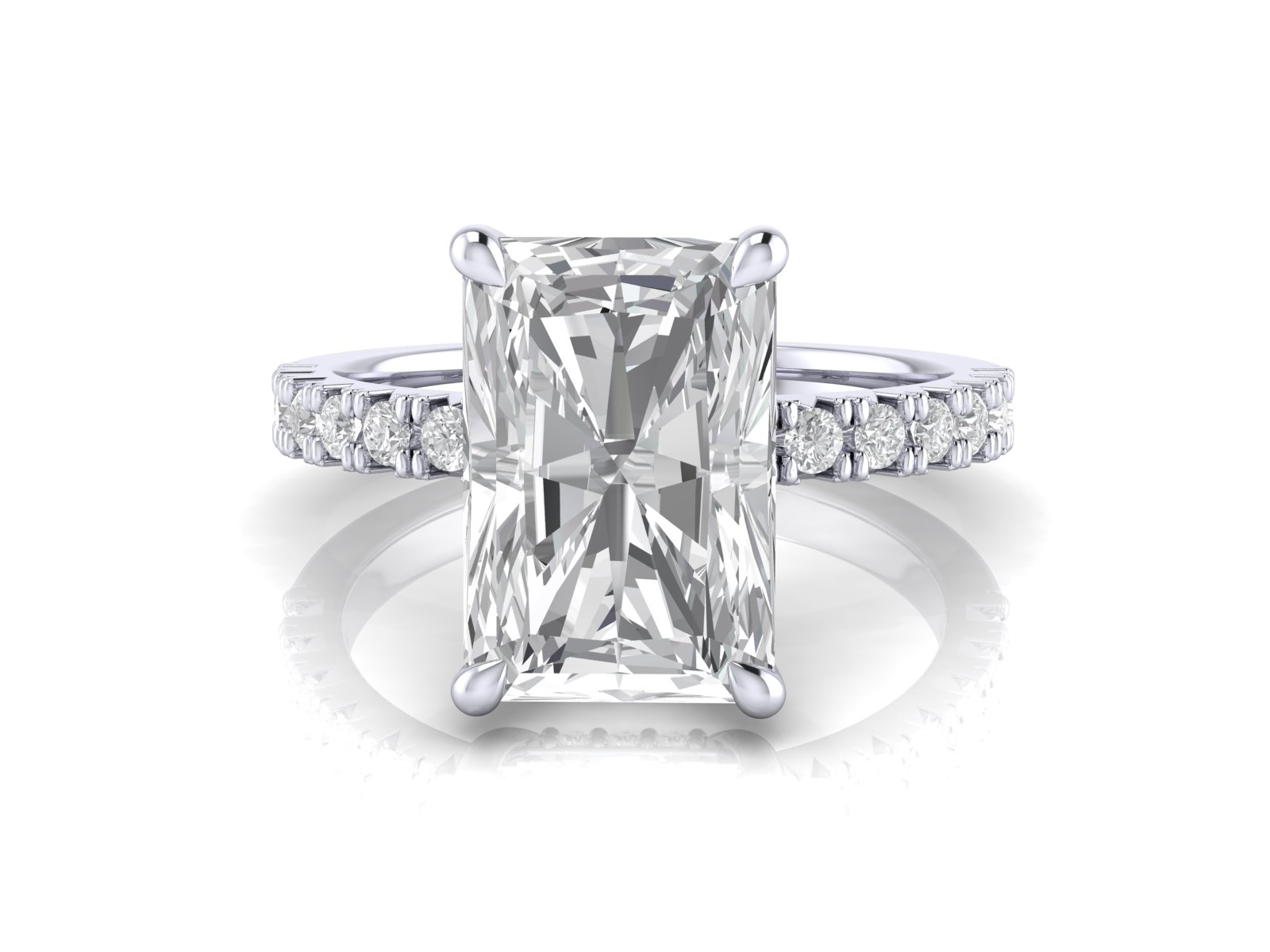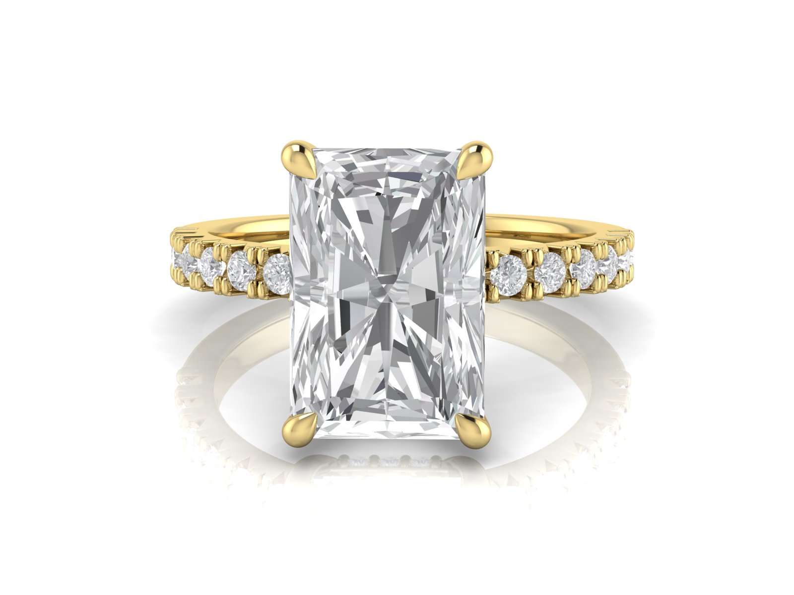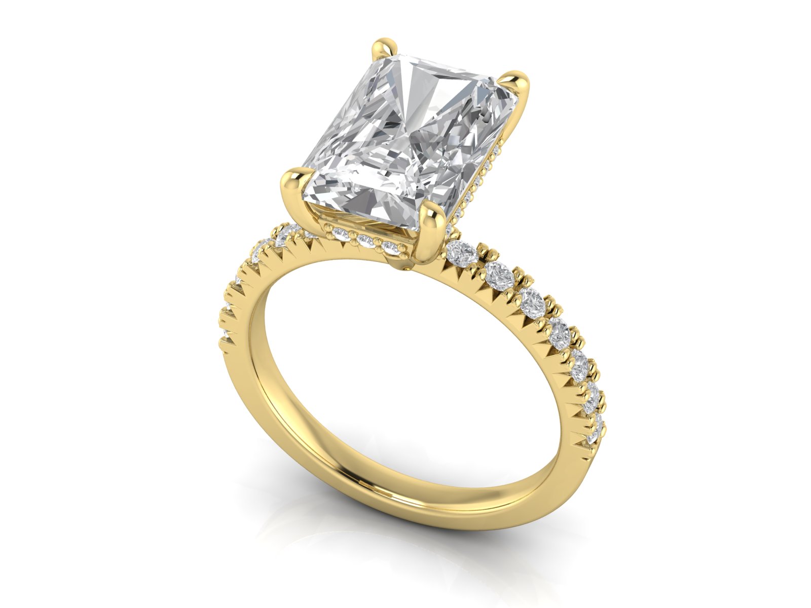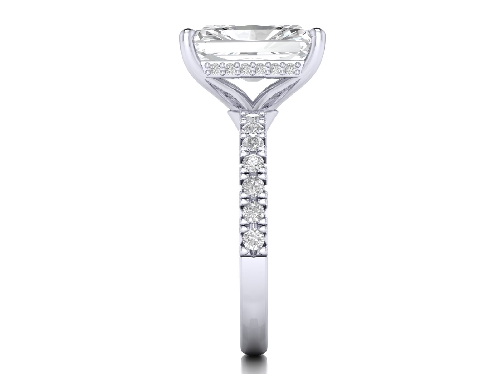 Radiant Solitaire With French Setting Diamond Band and Hidden Halo