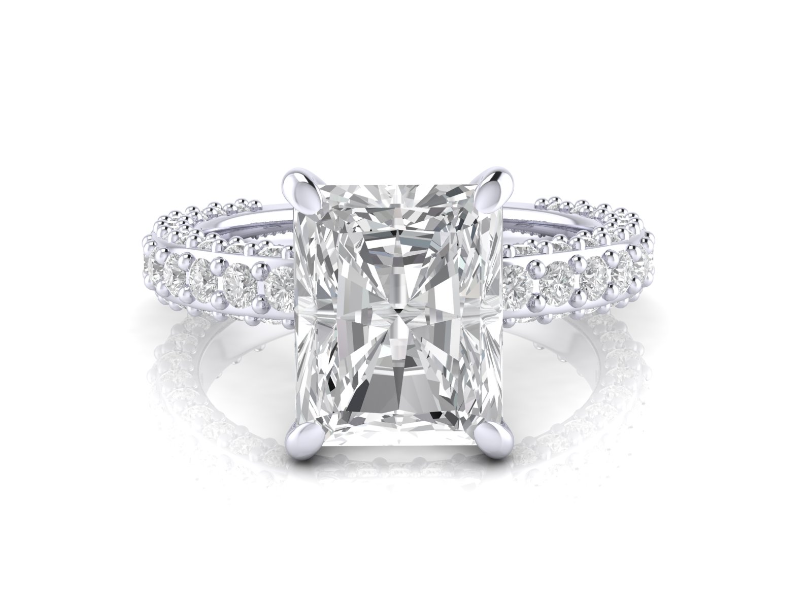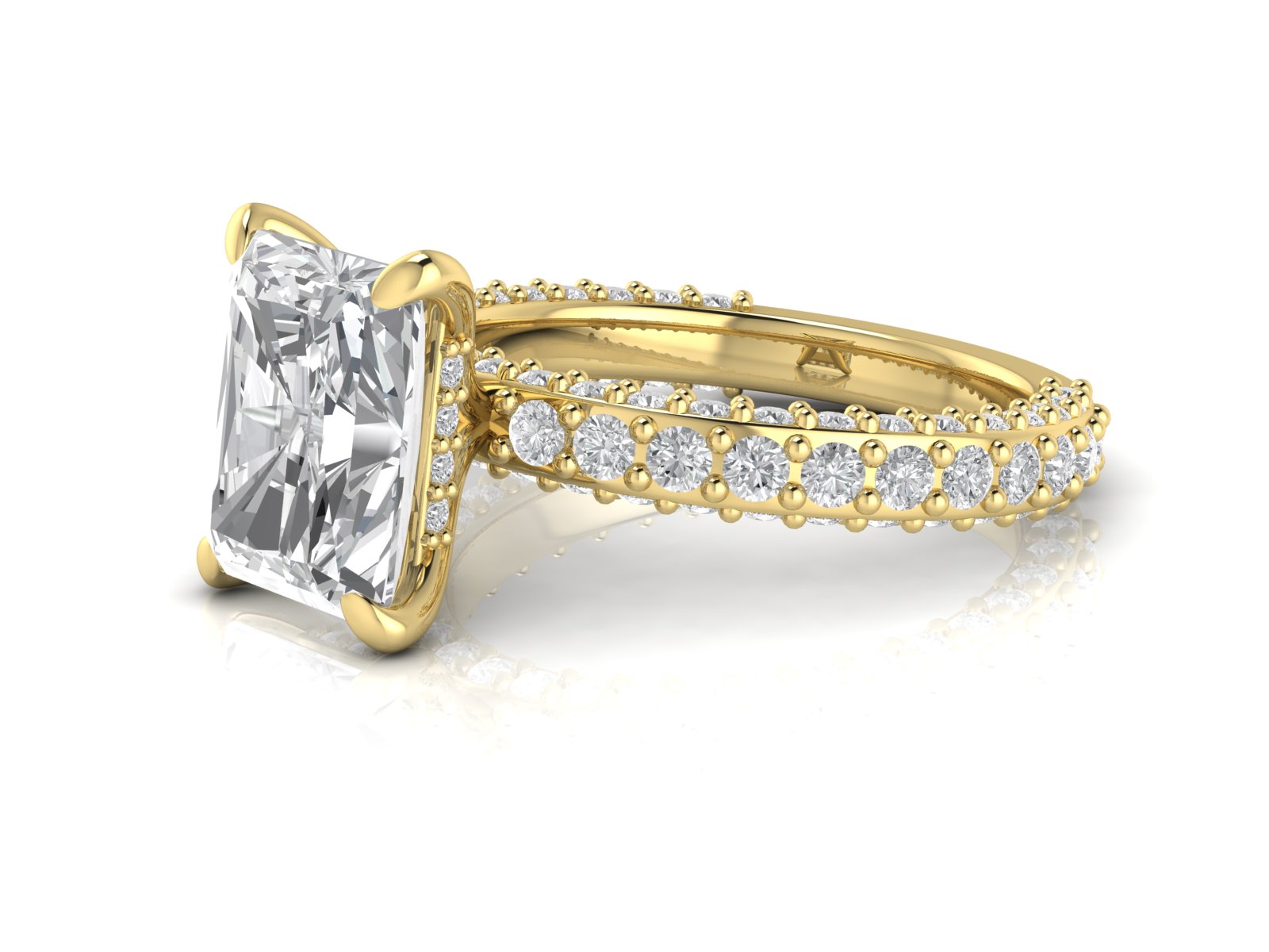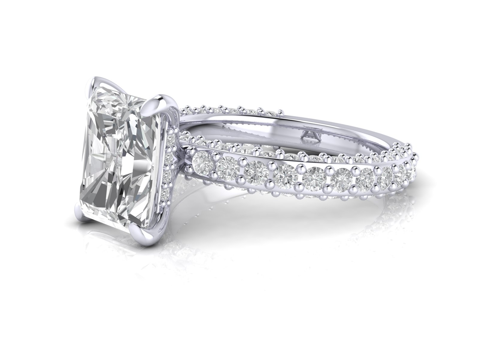 Radiant with 3 Sided Diamond Band and Hidden Halo