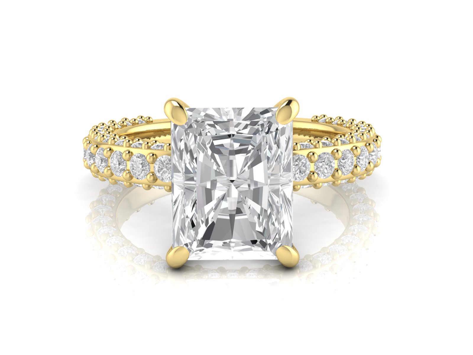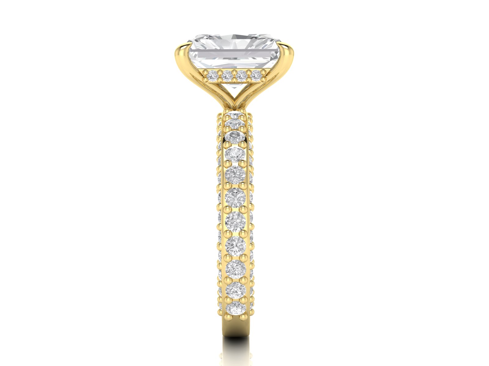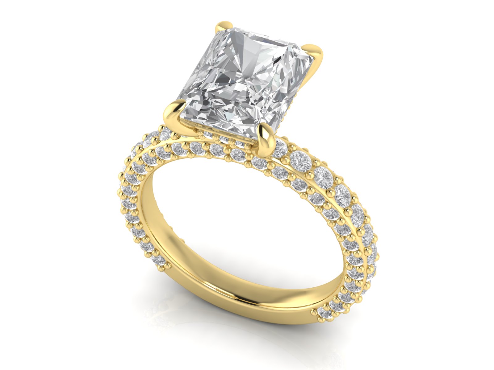 Radiant with 3 Sided Diamond Band and Hidden Halo