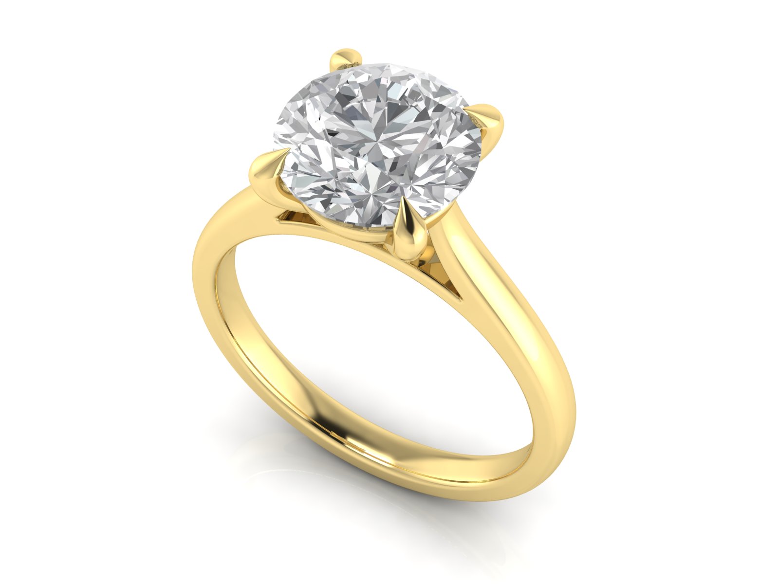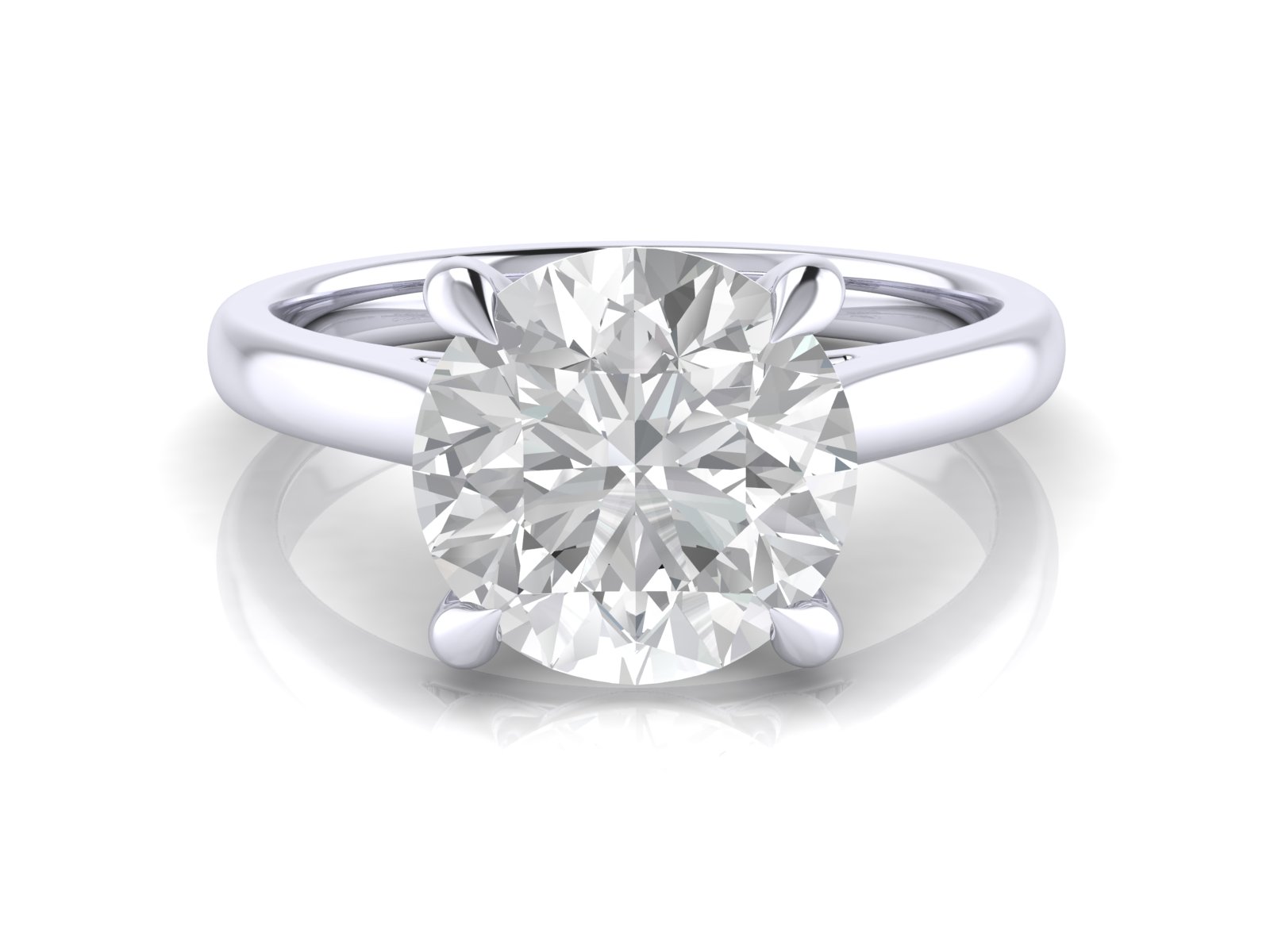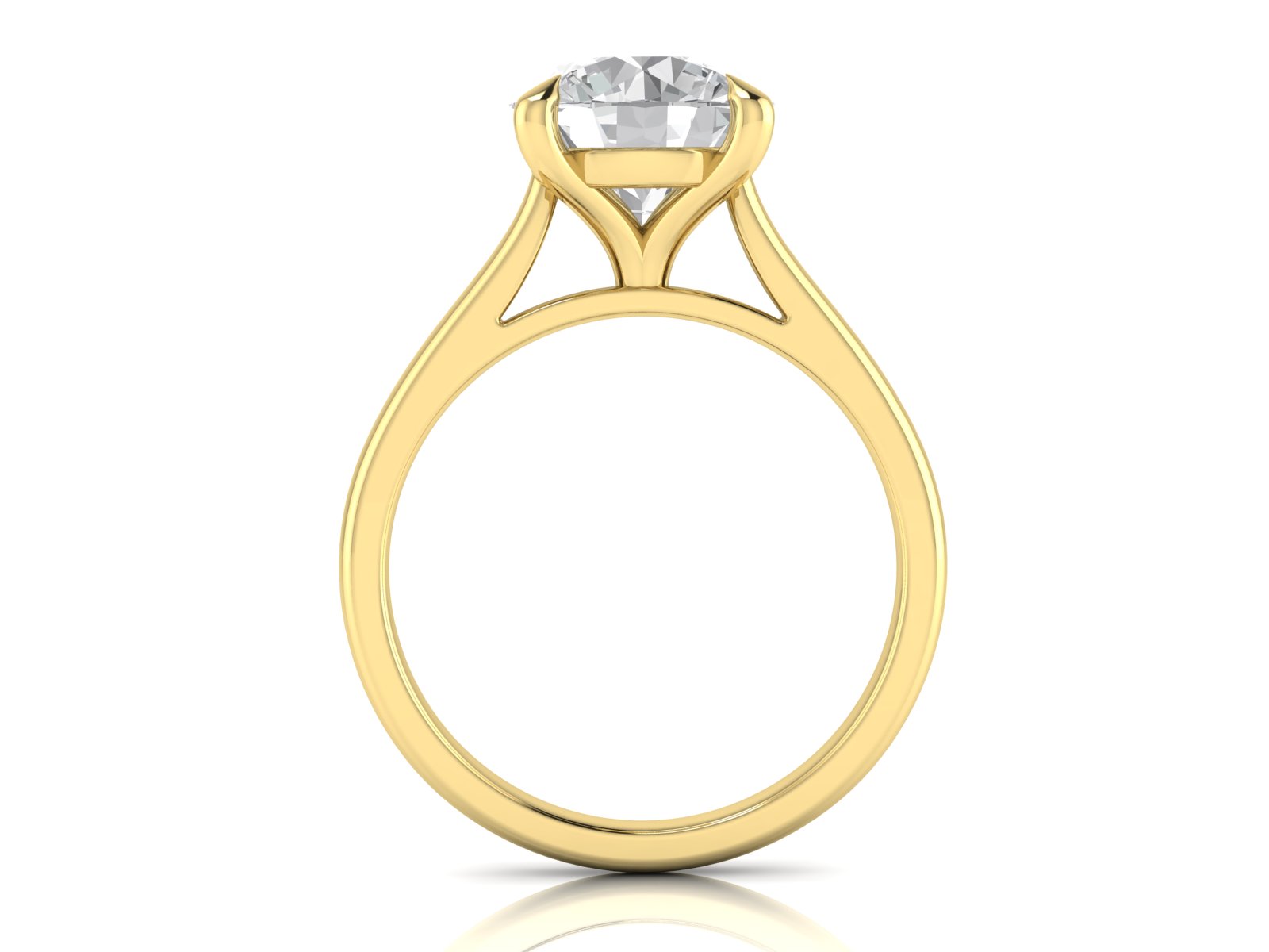 A classic round solitaire elevated by a cathedral setting, creating a graceful arch on either side of the diamond. This timeless design highlights the centre stone with understated elegance.