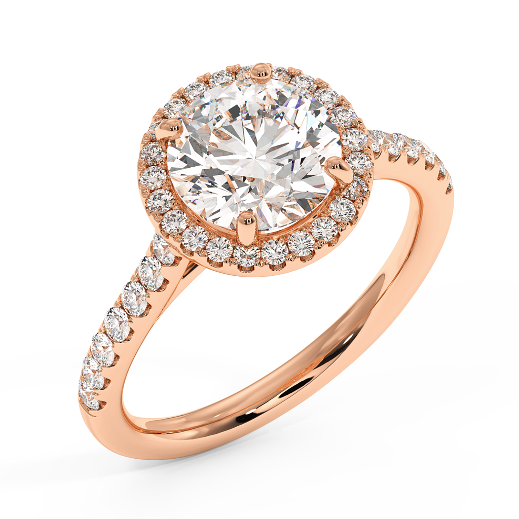 The diamond halo engagement ring is an  elegant design featuring a center stone of your that is surrounded by diamond set bezel or “halo”. This beautiful style creates the illusion of a very large centre stone at a distance and close up appears to be very intricate.